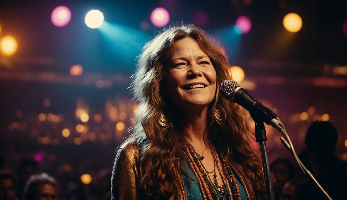 Janis Joplin's role as the lead singer of Big Brother & the Holding Company is highlighted, along with her memorable performances and timeless hits such as "Me and Bobby McGee" and "Mercedes Benz."